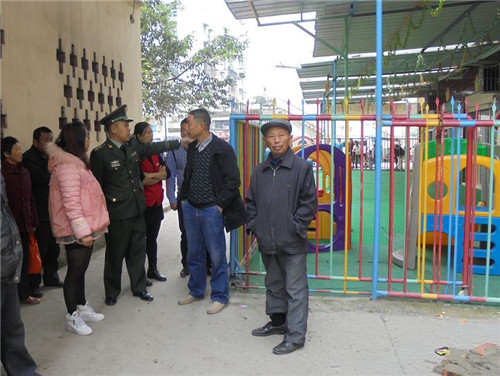 本着化解矛盾、公正执法的原则,游泳池大队监督员从消除隐患的立场出发,在居民和幼儿园间当起了调解员。首先幼儿园的栅栏必须拆除,保留出足够宽的消防通道;本着孩子的安全,幼儿园可以顺着屋檐1米左右搭建雨棚,其栅栏也紧邻屋檐。具体雨棚的设置,幼儿园自行与居民协商,同时报建设、城管部门批准后再实施。