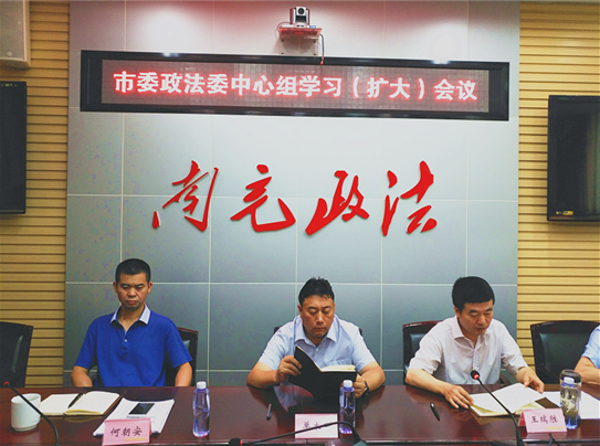 8月2日上午,市委政法委召开中心组(扩大)会议,深入学习贯彻习近平总书记在省部级主要领导专题研讨班上重要讲话精神和市委六届六次全体(扩大)会议精神,传达全省政法系统开展“四对照四提升 做忠诚卫士”专题教育活动和全市纪检监察工作会议精神。市委常委、政法委书记单木真出席会议并作重要讲话,常务副书记王瑞胜主持会议。