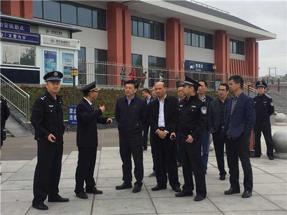 10月11日,省委政法委副书记、省综治委副主任、省综治办主任杨勇一行深入阆中火车站调研“十九大”铁路安保工作,市委常委、政法委书记、市综治委主任单木真,市委政法副书记何朝安,阆中市委常委、政法委书记柏兵、市综治办副主任张洪、张河陪同调研。