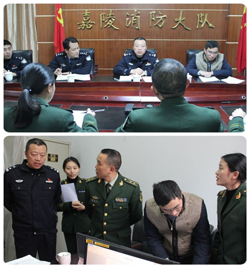 当天,嘉陵公安分局纪委书记皮培军一行首先听取了消防大队大队长蒲德才对嘉陵消防大队一体化政务服务平台运行工作的基本情况,以及大队在工作中存在的不足、以及目前存在的困难。随后,皮培军一行人通过登录嘉陵消防大队一体化政务服务平台,查看了嘉陵消防大队一体化政务服务平台实际运行情况,以及就平台运行中存在的相关技术问题、操作流程、业务分类、办结期限等进行了专业指导。