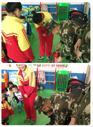 接着,在孩子们都安全到达教室后,专职队队员对幼儿园工作人员进行了消防知识授课。授课主要从火灾的基础知识、灭火的基本方法、常用灭火器的使用、火场自救的基本方法、消防安全知识等方面展开。活动现场,专职队队员通过对常用的消防设备的演示,让幼儿园工作人员对于消防设备的使用有了进一步的了解,尤其是对灭火器的使用,总结了灭火器使用口诀“提、拔、对、压”,使教职工们很快掌握了灭火器的使用方法。